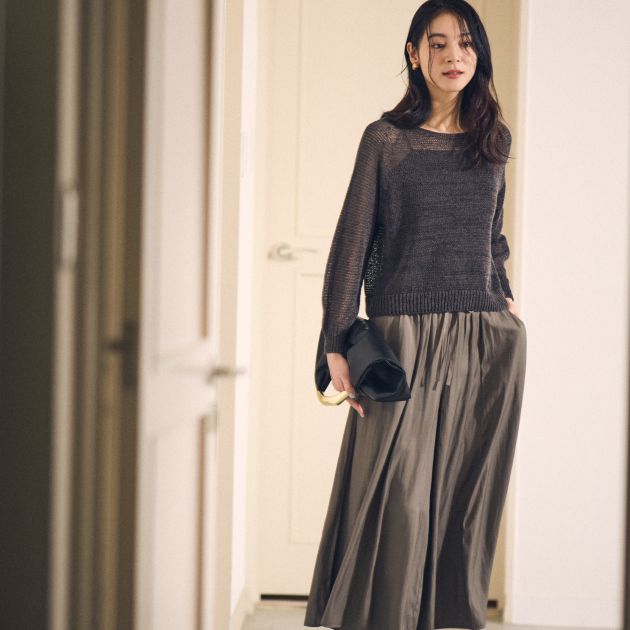 パールボタン×ラメシャギー カーディガン