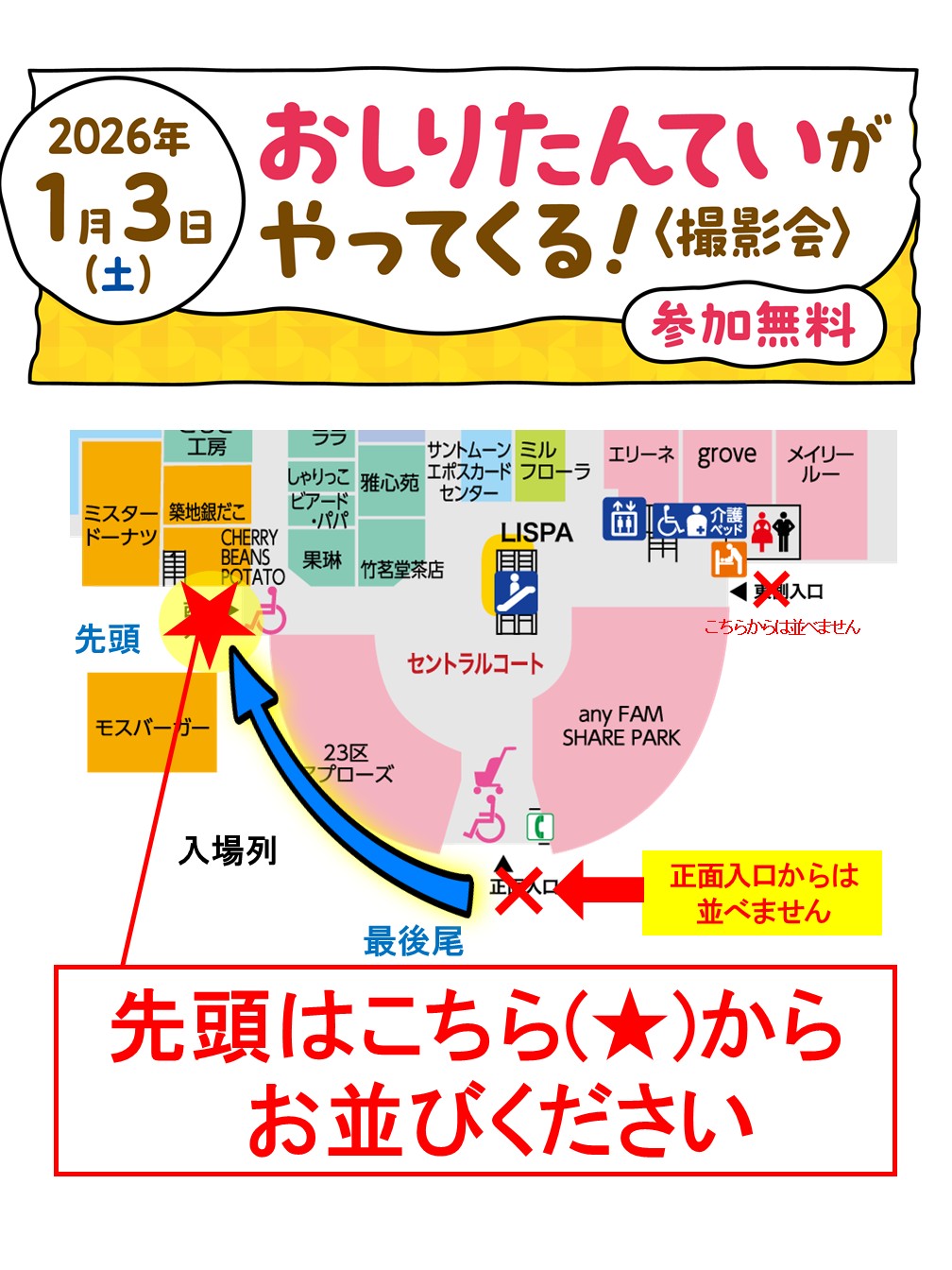 ※撮影会参加券は、10:00より本館1F西側入口にて全ての回の参加券を配布いたします。