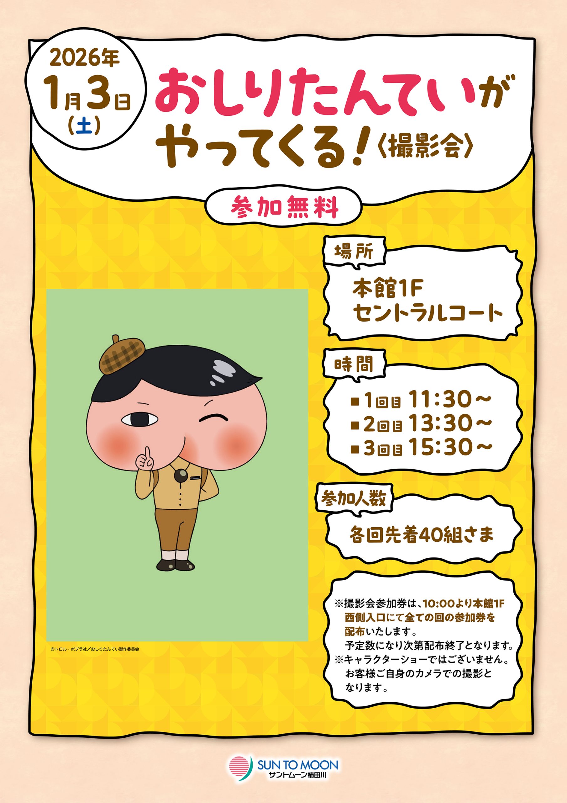 ※株式会社タレントブッキングtb@t-booking.co.jp 件名「1/3おしりたんてい」でお問い合わせください。