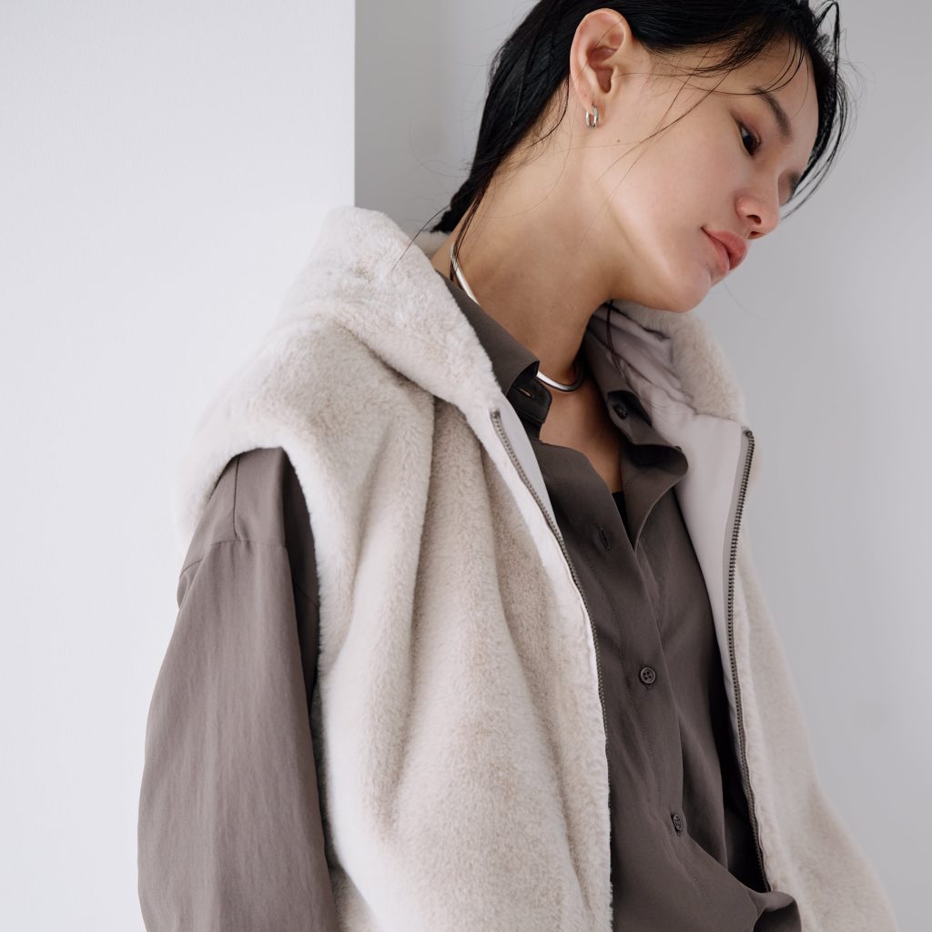 続きの短い袖が、シルエットにニュアンスを作ります。