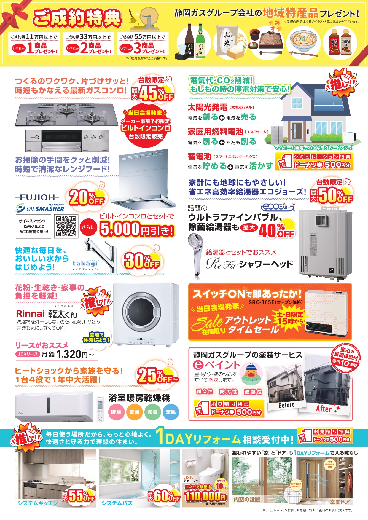 システムキッチンやシステムバスの展示のほか、最新のガス機器やレンジフードをおトクに購入できるチャンス!