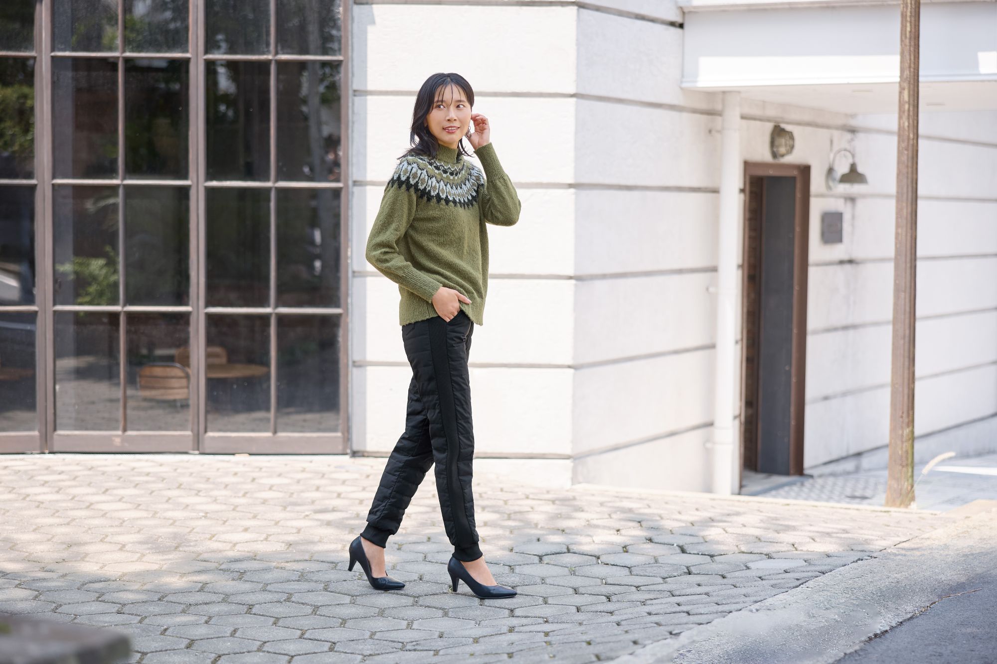 寒い季節のお散歩やゴルフなど、カジュアルにもスポーティにも幅広シーンで合わせやすく、1本あると重宝するアイテム✨