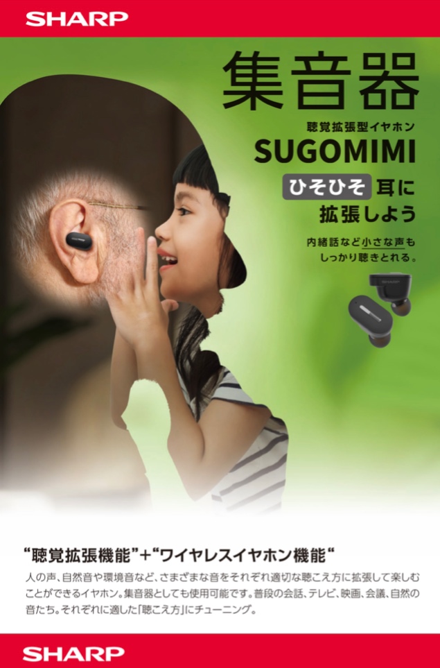 SHARPの集音器「SUGOMIMI」の取り扱いを始めました。