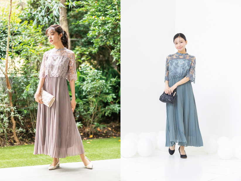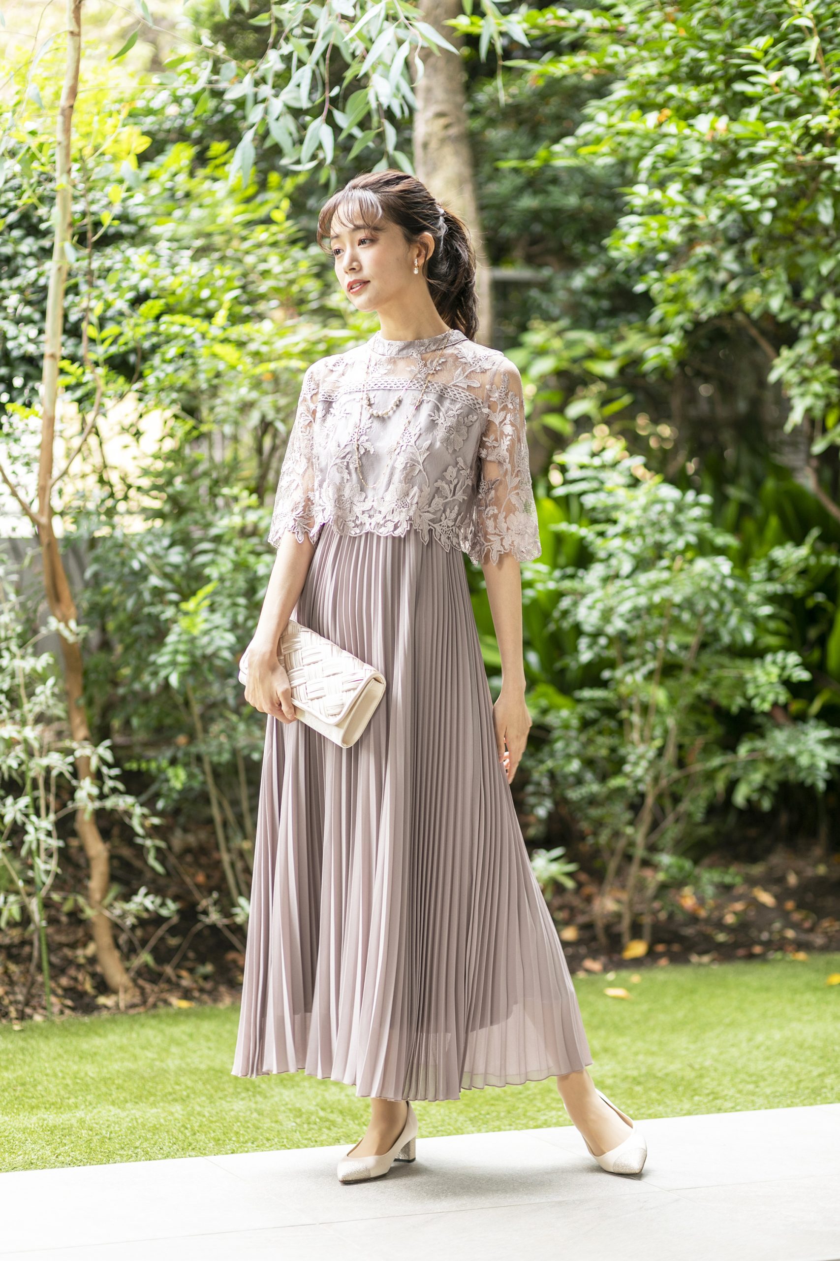 トレンド要素満載!刺繍×プリーツの華やかロングドレス