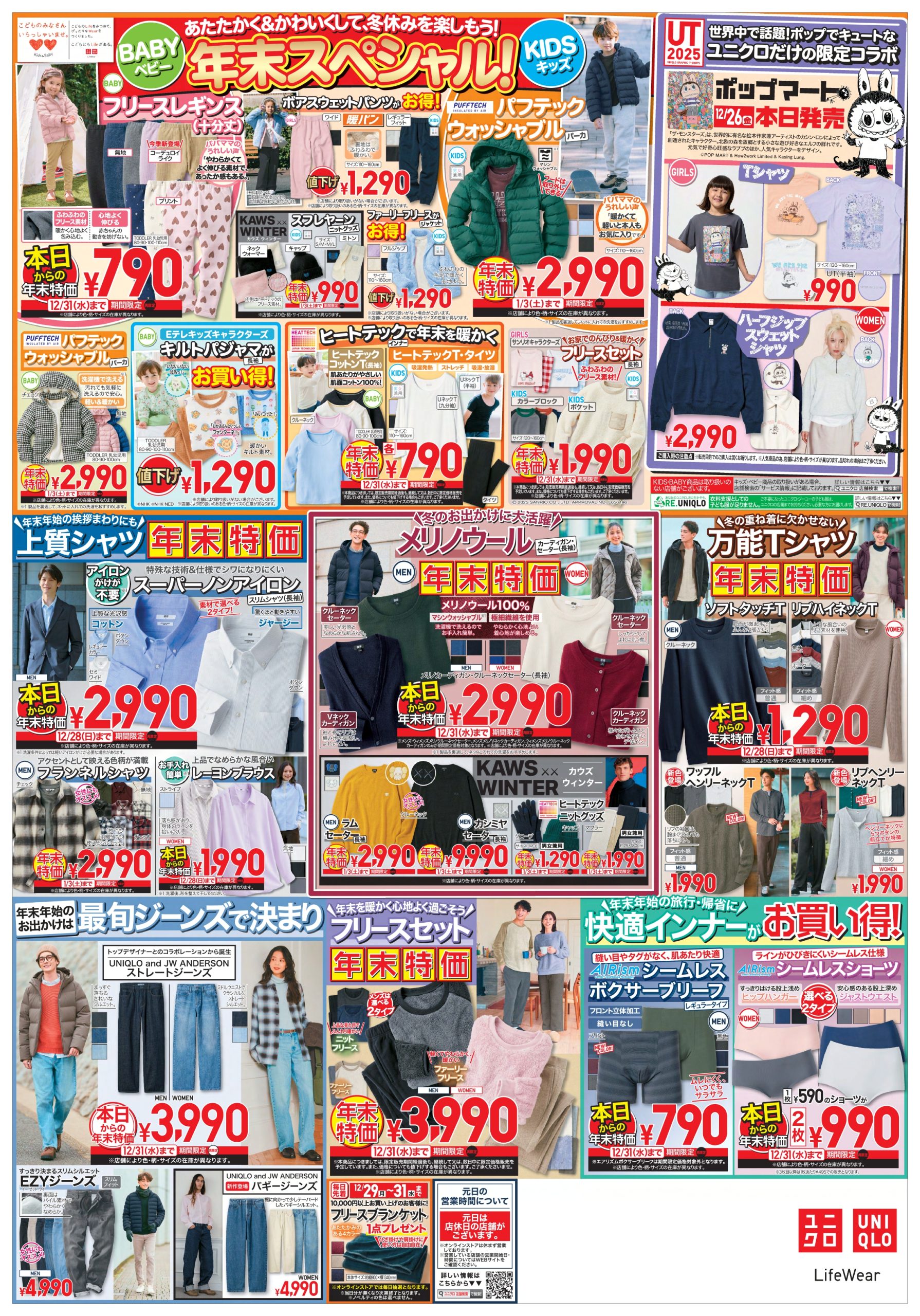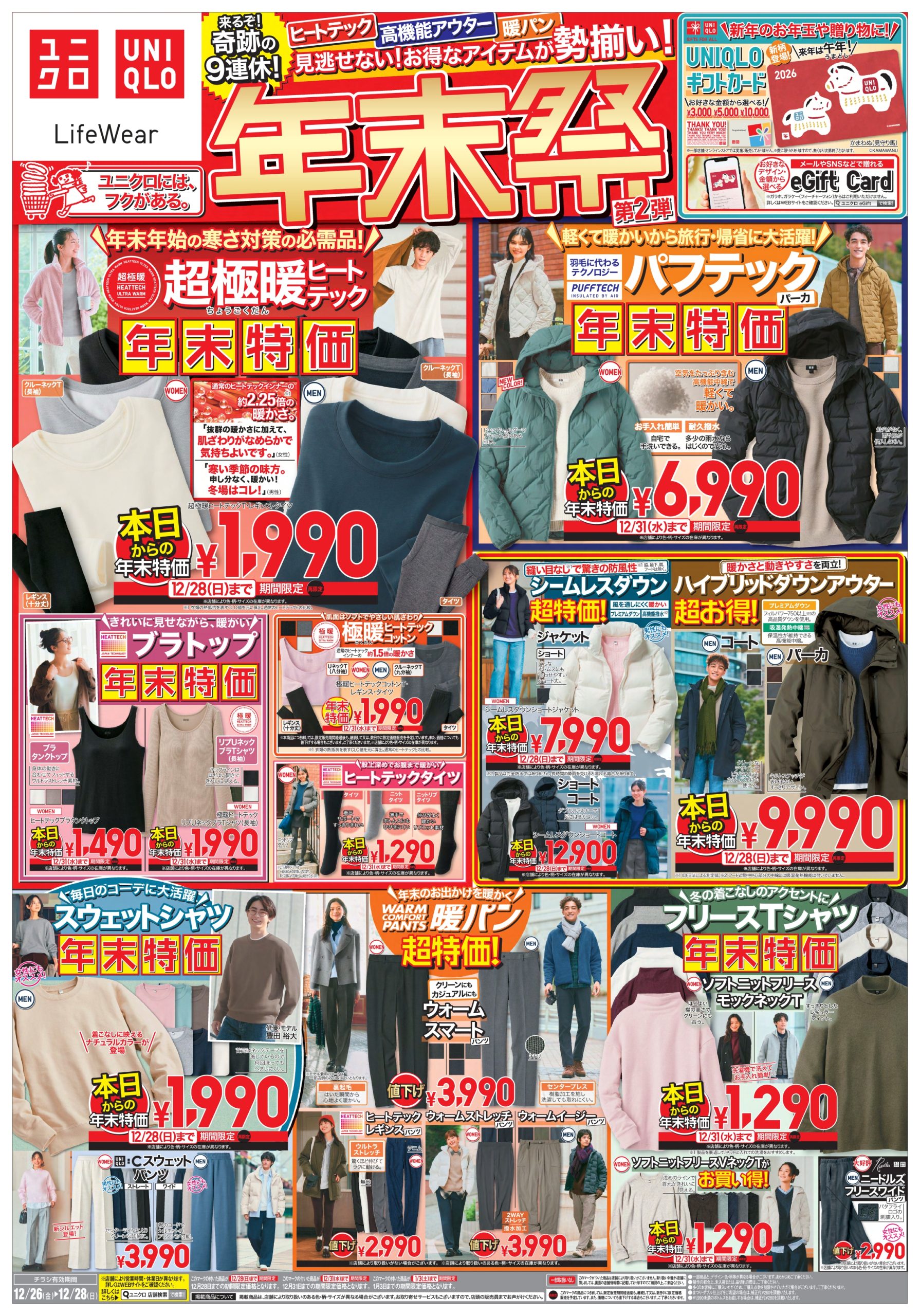 年末祭 第2弾! ユニクロ 2025.12.26掲載 【ヒートテック】【高機能アウター】【暖パン】など見逃せない! お得なアイテムが勢揃い! (※限定価格の商品の期間が商品によって異なる場合がございます。ご了承ください。) gallery ユニクロ ファミリーファッション アネックス1F ショップニュース一覧