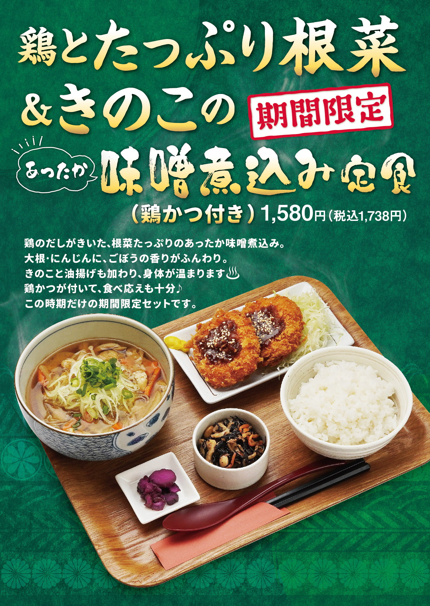 期間限定【たっぷり根菜&きのこの あったか味噌煮込み定食】