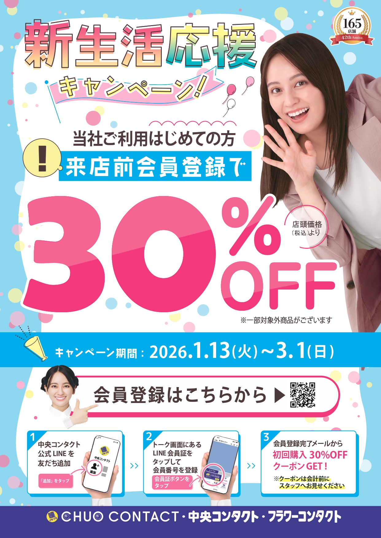 中央コンタクトでは新生活応援キャンペーンを開催しております