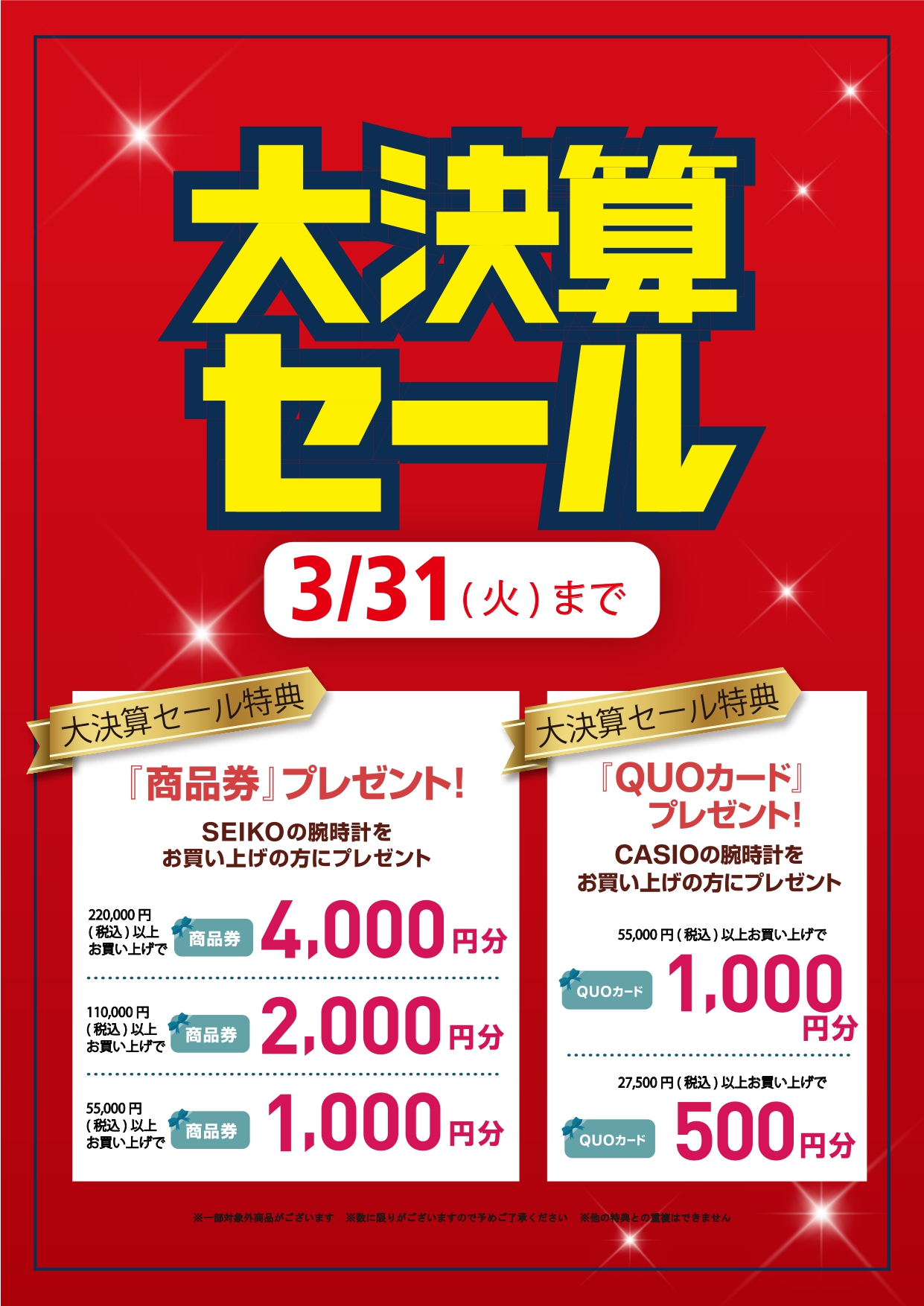 現在ウオッチタウンでは3/31(火)まで大決算セールを絶賛開催中です✧