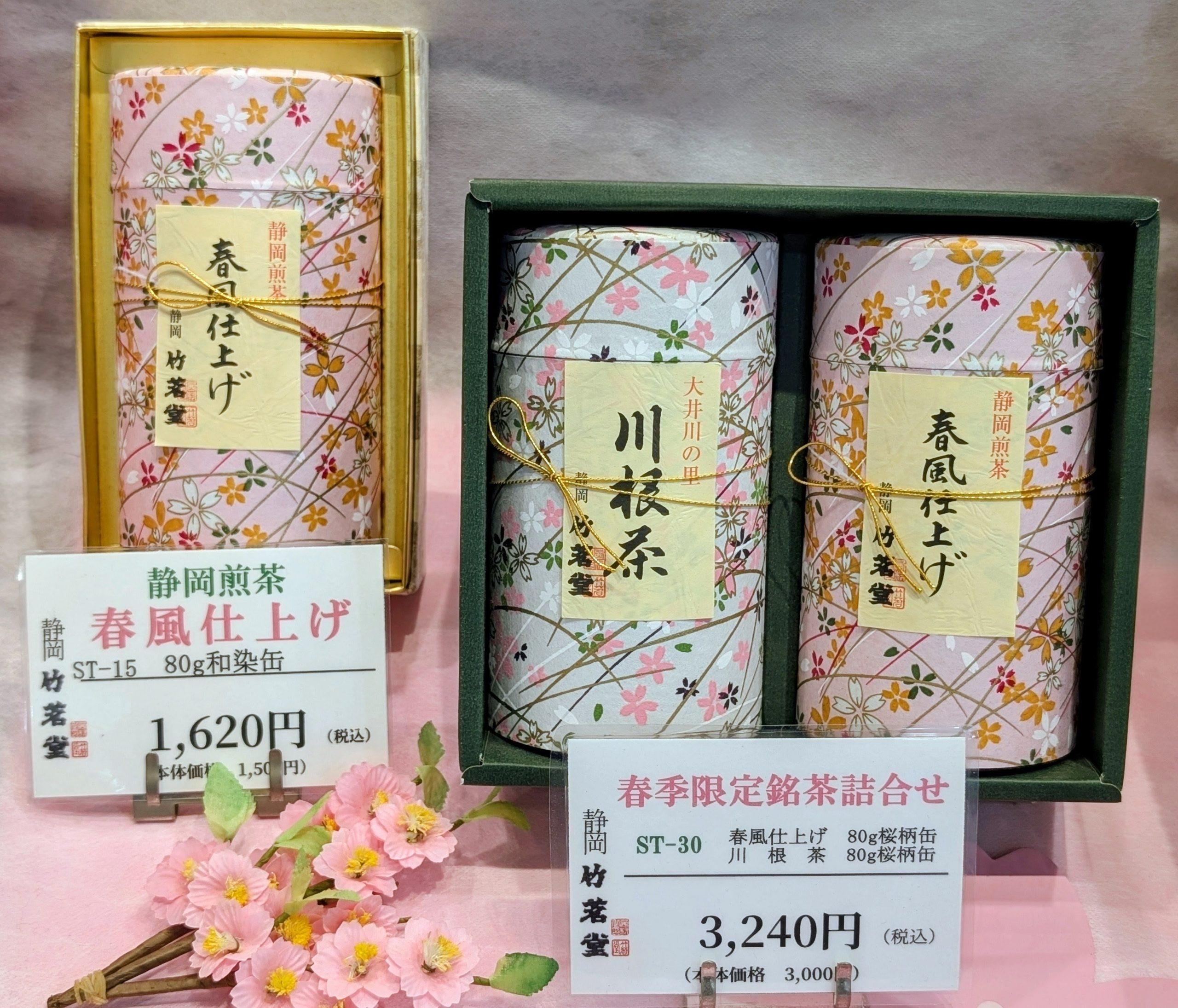 ・ST-30 80g桜柄缶と川根茶80g桜柄缶のセット 税込3,240円