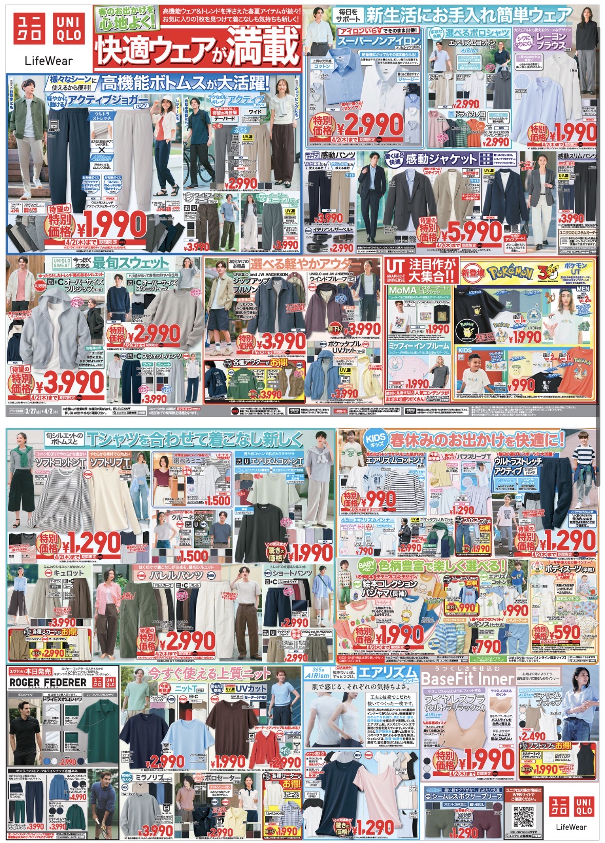 新生活応援特大号‼️ ユニクロ 2026.03.27掲載 春のお出かけを心地よく‼️快適ウェアが満載‼️ お買い得な限定価格の商品を取り揃えて皆さまのお越しを心よりお待ちしております。 また店内には多数の新作、新価格のお買い得商品やkids・babyの商品もご用意! アプリやチラシもチェック☑️ ぜひアネックスのUNIQLOにお立ち寄りくださいませ♪ お待ちしております! ユニクロ ファミリーファッション アネックス1F ショップニュース一覧
